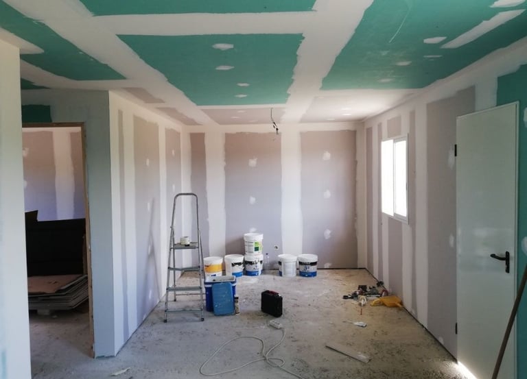 Pladur e Reboco: Instalação de paredes de pladur e aplicação de reboco para um acabamento perfeito.
